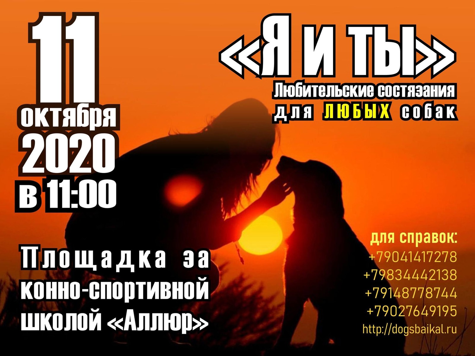 Мероприятие состоится 11 октября 2020 г. на дрессировочной площадке СДЦ «Город Собак» в пойме р. Китой (за конно-спортивной базой «Аллюр»).