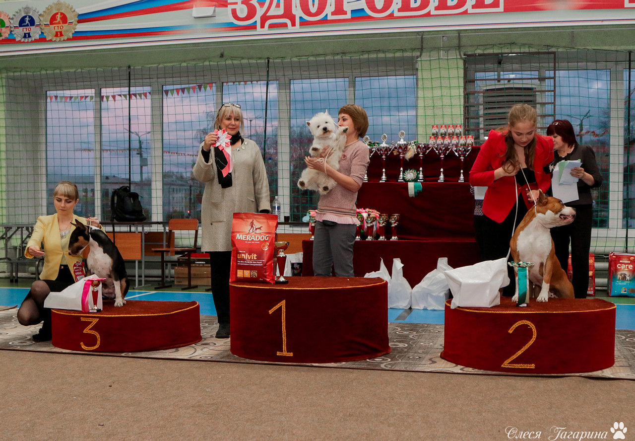 2 место - американский стаффордширский терьер STOMA'S GRAND CHARGER, вл. Махмаев Р.