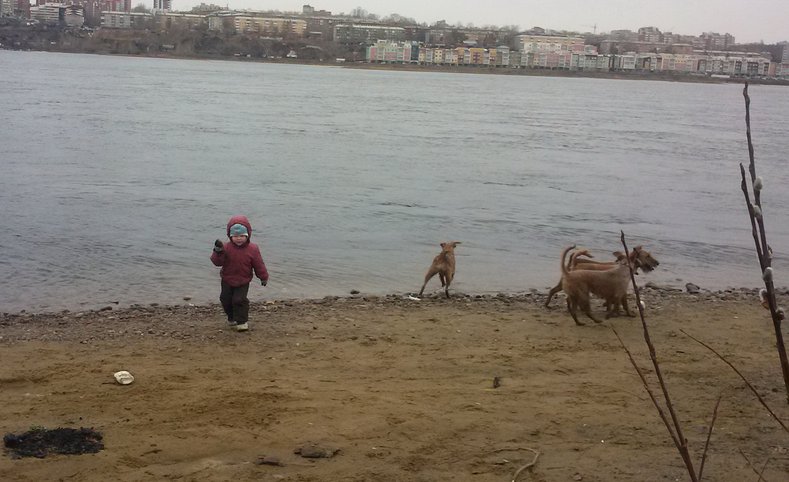 4 собаки и ребенок - вот это профессионализм! У меня одна собака и ребенок в разные стороны на улице разбегаются