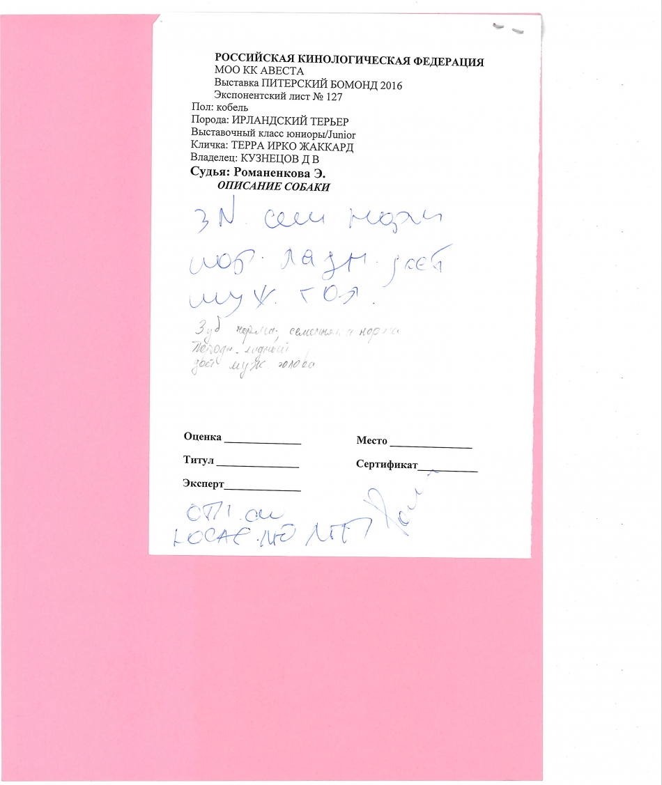 Привет всем! Поздравляем с прошедшими результатами на выставках Ханю, Вейрона!