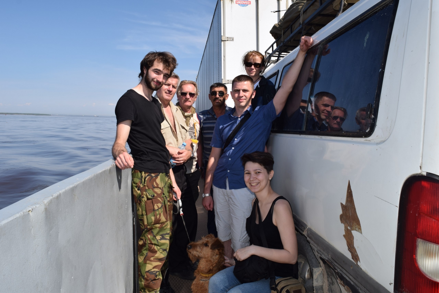Всё началось с того, что город нас провожал жуткими пробками. Мы едва не опаздали на самолёт. Приехав за 10 минут до закрытия регистрации, мы чудом успели на самолёт. Пройдя регистрацию и отдав Реджи в багаж (тогда ужасно переживал как он там и не потеряют ли его вообще), мы сели в самолёт. Рейс Санкт-Петербург - Якутск вылетает в 5 вечера и прилетает в 6 утра. Для Реджи это второй в жизни перелёт, перенёс он его совершенно спокойно. Так что в Якутске мне выдали переноску с Реджи, который выйдя на свободу принялся радостно скакать вокруг меня. Затем нам предстоял длительный путь из Якутска в Чульман (800 км). Мы погрузились в машину, переплыли на пароме через Лену, а потом 10 часов в машине по суровым якутским дорогам. Водила гнал так, будто у него была задача уйти от погони. 90-100 км/ч не снижая скорости по асфальту и грунтовой дороге, не смотря на дождь, ухабы и другие машины, мы мчались к пункту назначения. Реджи склубочился на полу и спал, на особо тряских участках забирался на руки и просто дремал. Для меня же это получился очень длинный день начавшийся утром первого числа, а закончившийся в 3 ночи 3 числа. Почти без сна. Вообщем добрались, теперь предстоит вылет на вертолёте в места где не будет связи) Удачи всем и хорошего лета. 8-)