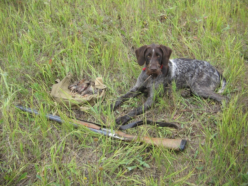 Мать - Пегги 4934/14, кофейно-пегая, от Даго ф.д.Теуфлау 4667/13 и ч. Шерри 4563/12, оценка экстерьера "отлично", полевые дипломы 1-II ст. по куропатке, 2-III ст. по куропатке, 1-I ст. по утке, 1-II ст. по утке, Первый племенной класс, вл. Богданович В.А., Иркутск.