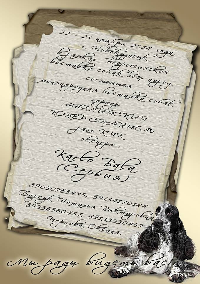 АНГЛИЙСКИХ КОКЕР СПАНИЕЛЕЙ, которую организует НГКО "ЮВАТ" (г.Новокузнецк)!!!