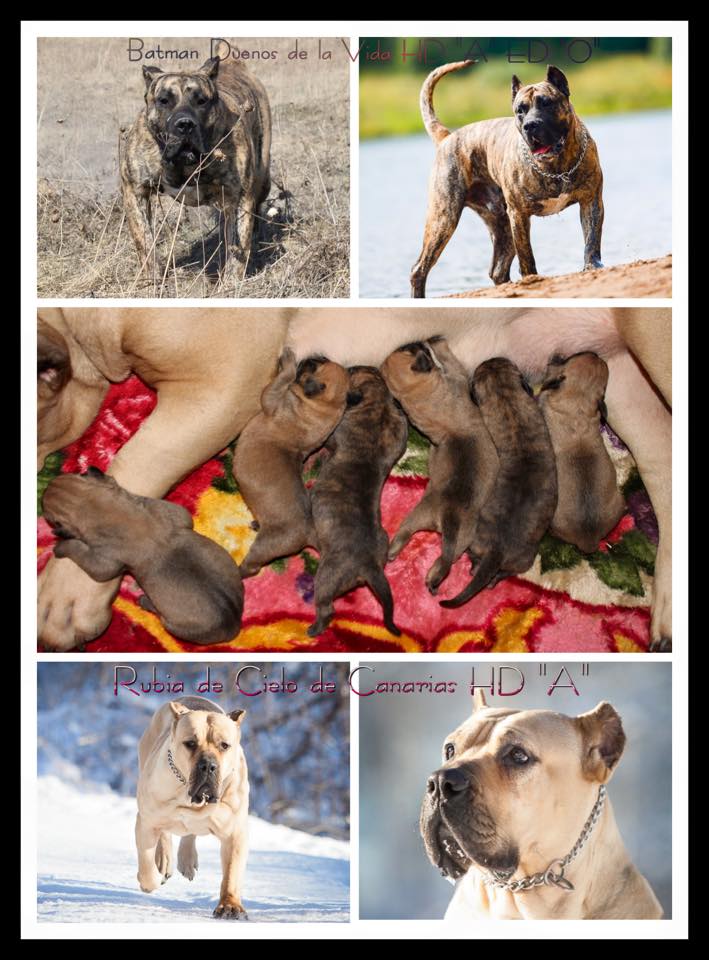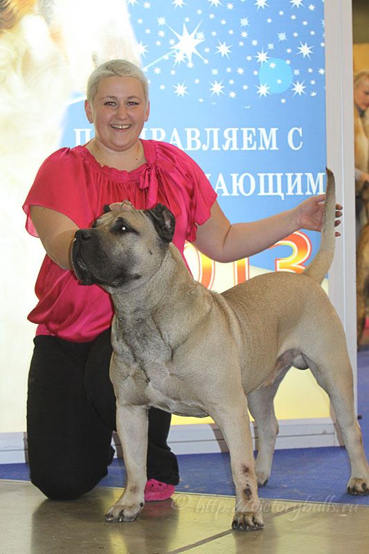 Маман просто бомба, гипертип. Весь питомник под себя подмяла вместе с азиатами. Не забуду свой первый приезд в питомник, до этого я канарцев видела только на фото, ну мощные собаки да но когда Катя (моя заводчица) начала их по одному выпускать у меня был просто шок. Гуайра уехала обратно в Испанию, ее перекупили испанцы, надеясь получить хотя бы один помет. Ее крови только у меня и в Испании, которые мы начали использовать в разведении.