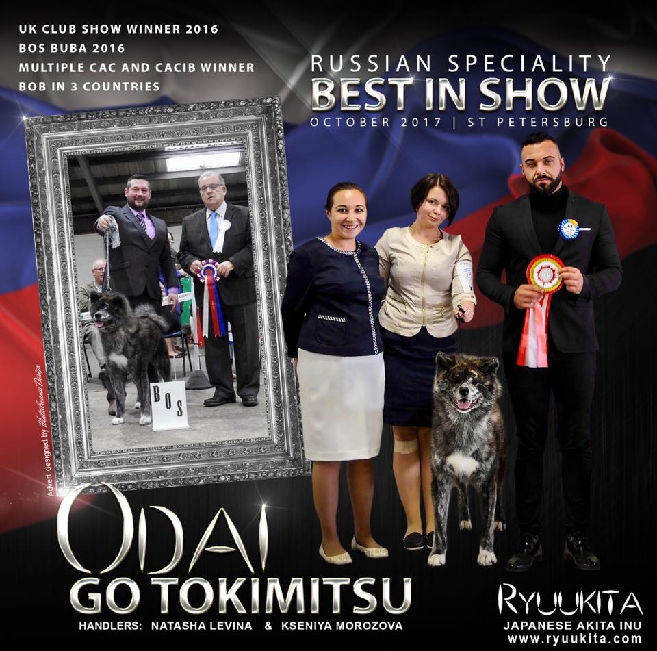 Хотя порода развивается в сторону компактности, на выставках пока побеждают длинноногие акиты. Судья судит по действующему стандарту. Поэтому наиболее титулованный в этой выставочной парочке мальчишка-АКИХИТО ТАНО ХОТЭРУ, 15 мес. (TOUZOU GO HIMAI SANGAKUSOUх БИНРА МАЙН ЭТСУ х) зав. Бусыгина Н.Г., вл. Подлосинская Н., Чита. –ЮЧР, ЧФ РФСС. ЛЩ, ЛЮ, 2хJCAC, 1хJCAC CACIB, 1хСАС, ЛК.