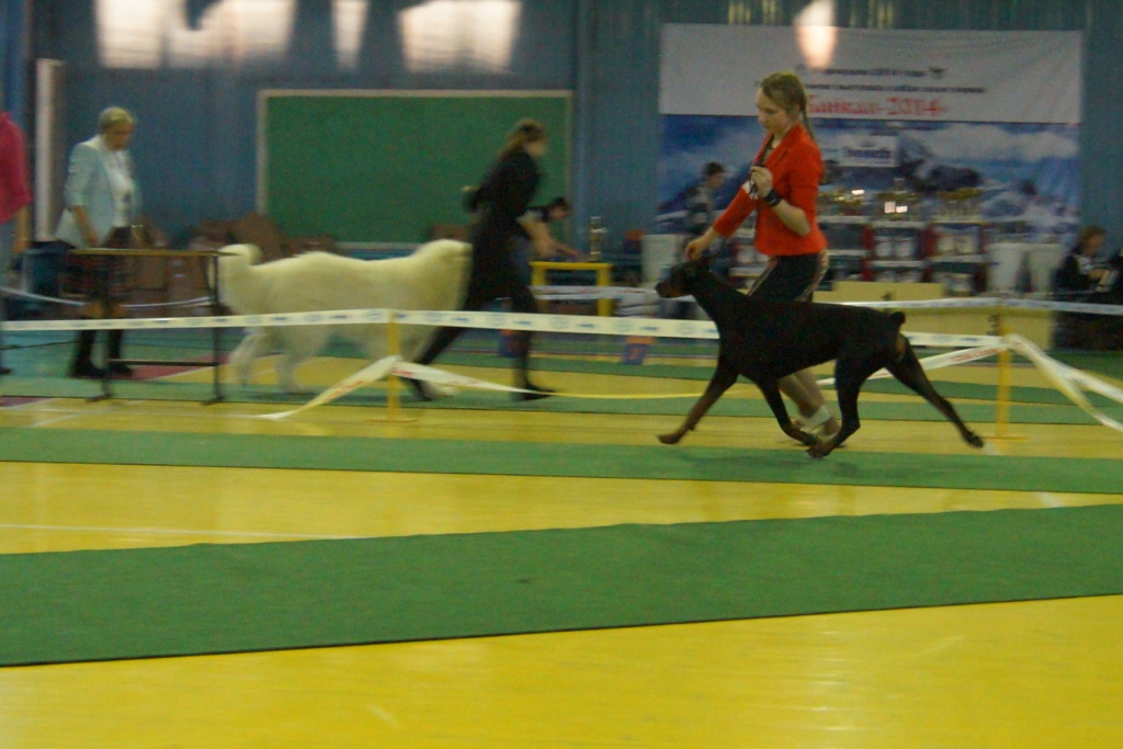 Ника закрыла юного чемпиона России, с чем я ее и поздравляю!!! Да, я думаю, что после этих выставок Ника будет стараться все лучше и лучше, молодцы, справляются с поставленной задачей, очень рада что нашли подход к стойке. Ахилл- ну что тут сделаешь, наш гигантизм никуда не денешь, хотя, есть случаи, когда закрывают титулы и с большим ростом, поэтому будем стараться, к тому же описание на ура! Поздравляю всех участников, и победителей. Очень понравился бэбик, целовательный малый, очень хороший характер и анатомия. Тортик- молодец! Ким- умница!