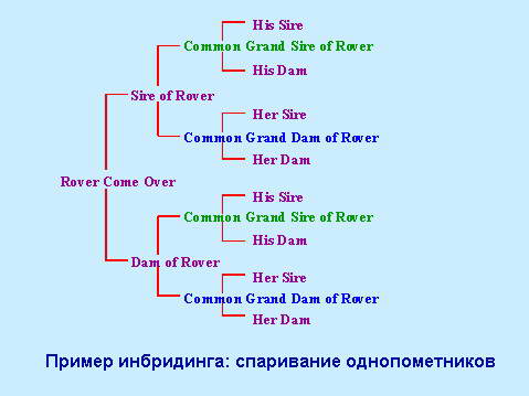 В качестве примера он привел родословную собственной собаки, ирландского сеттера, у которого бабушка и дедушка однопометники.