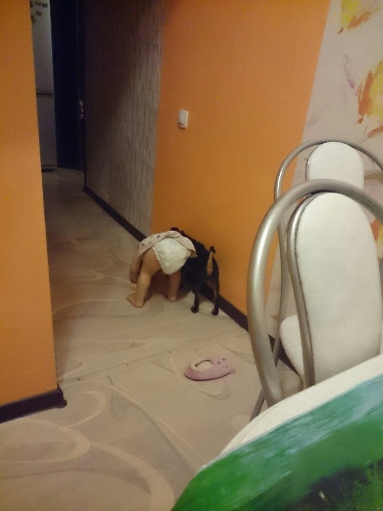 муж то работает, а у меня уже сердце в пятки уходит. как бы дети его не задели случайно. как бы он себе чего не сделал. нечаянно старшенькая моя ему задела уши. прокусил ей руку. вот как на иголках тут с ними. собаку жалко