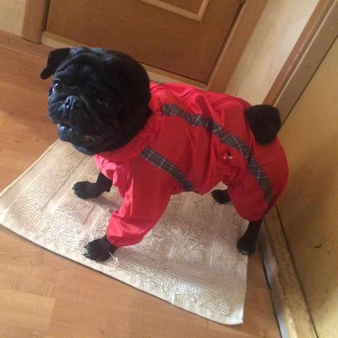 После прогулки в таком прекрасном дождевике достаточно всего-лишь лапочки об коврик вытереть.