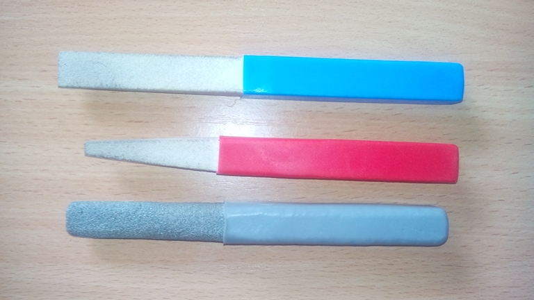 возможно, имеет смысл взять такие же наборчики, как у нас с Леной т.к. даже не знаешь, что лучше. Я пользуюсь универсальным. Если Вы наберете в интернете такие фамилии, как Елизавета Елизарова, Ирина Кононенко - это из грумеров, кого так, с ходу, могу назвать, они пользуются именно лопатками, как на картинке. Про корунд - говорила уже, но форма может быть разной. Такая нам удобнее в руке будет.