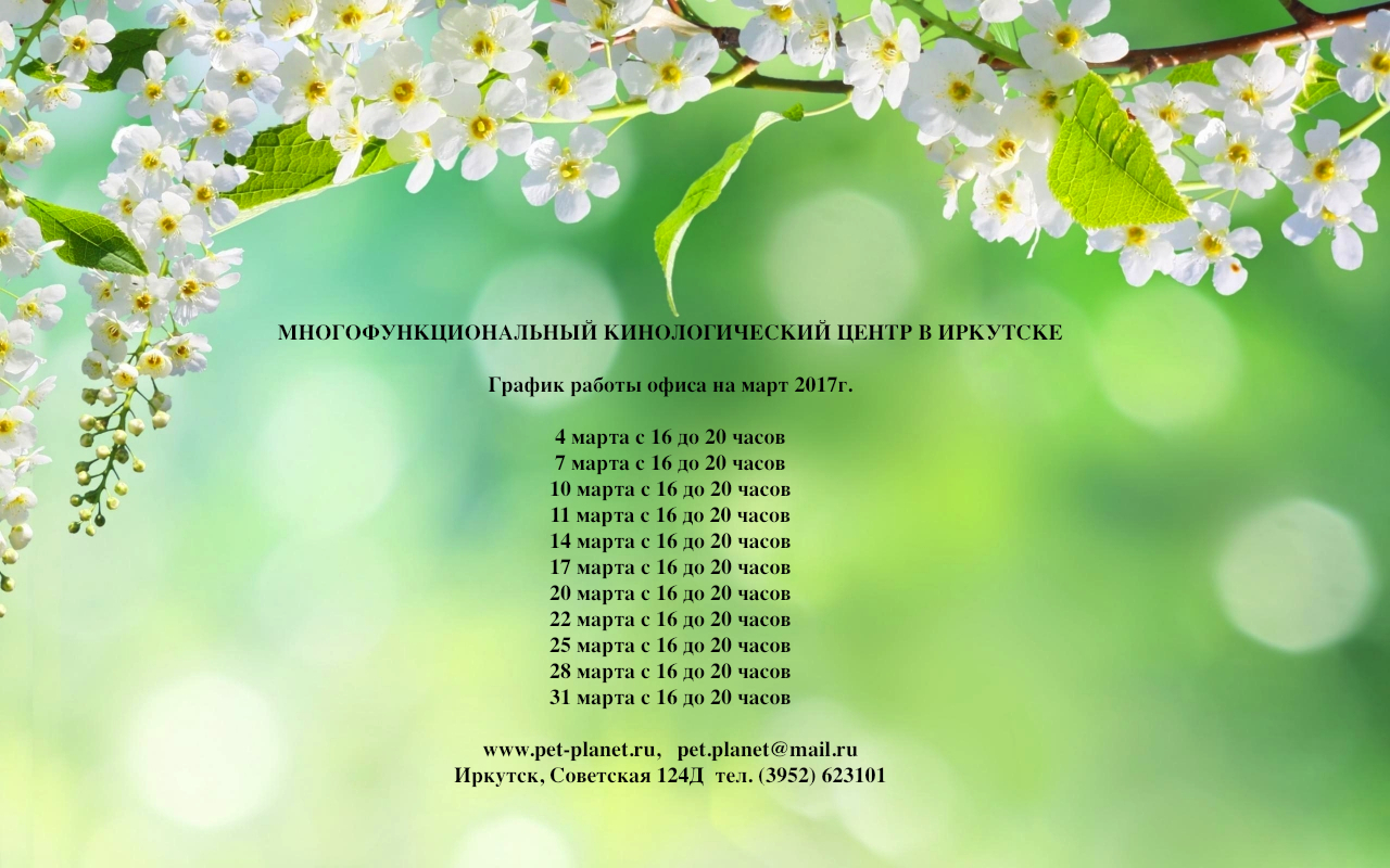 ГРАФИК РАБОТЫ ОФИСА НА МАРТ 2017 год