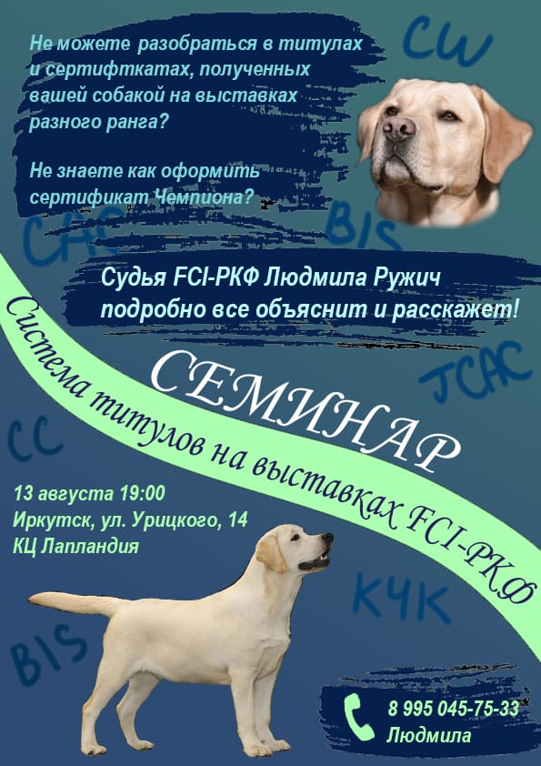 13 августа СЕМИНАР СИСТЕМА ТИТУЛОВ НА ВЫСТАВКАХ FCI-РКФ